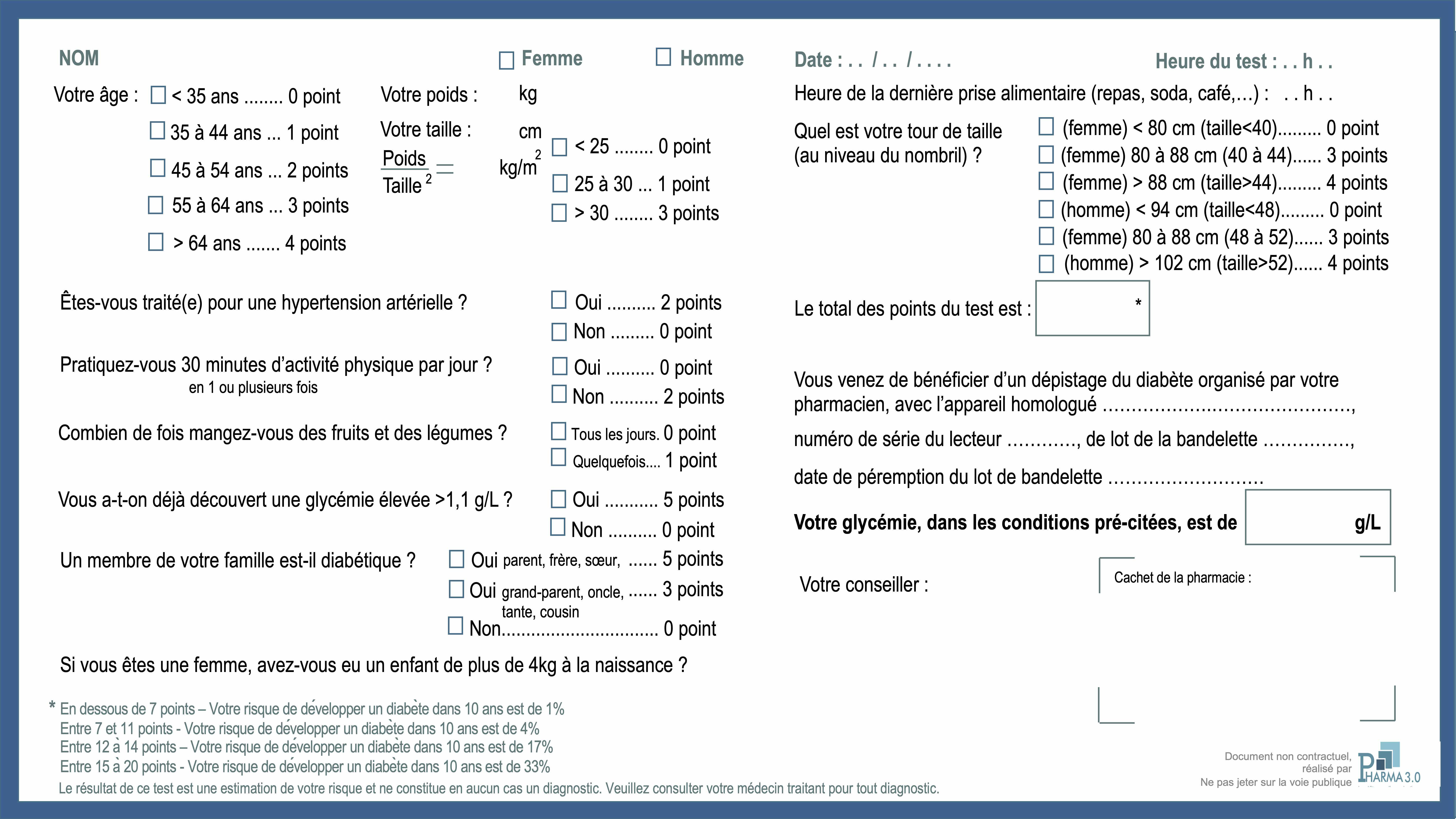 - Le Remis patient (questionnaire Findrisk avec traçabilité du prélèvement capillaire)